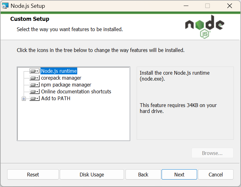 3.检测Node.js是否安装成功。使用管理员身份打开Powershell或者终端软件(cmder),输入node -v,如果返回一个版本号,证明安装成功。